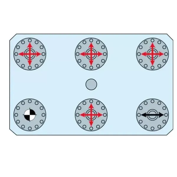 Version 1 centering spigot / A, 1 compensation spigot / A, 4 chucking spigots / A. Mounting With the bolts supplied through the pallet or through the chucking spigot.