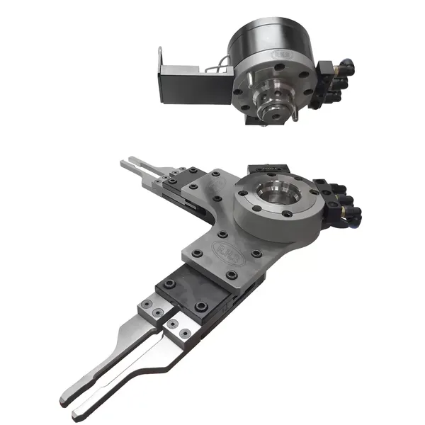 Robot Arm End Gripper for Multi-Gripper. RHS Robot Arm End Gripper for Multi-Gripper is assembled on the end of robot arm. Compatible with Erowa, system 3r and Fanuc. It applies to automation production line, coupling with any kinds of multi-gripper to change end mills or electrode holders on machine center automatically. It can reduce machine tool changing time to improves production efficiency.